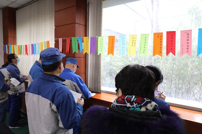 猜燈謎,與燈籠相伴而生。書于燈,映于燭,賦于形,藏于字?;顒蝇F(xiàn)場,一個個精美靈動、古色古香的燈籠呈現(xiàn)出濃濃的節(jié)日氣氛,一則則獨特的燈謎吸引了廣大黨員、職工踴躍競猜,二百余條燈謎將黨史、廉政知識融入傳統(tǒng)民俗之中,詼諧幽默、寓意深遠、耐人尋味。