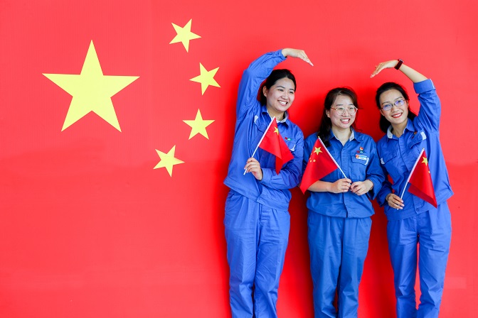 “盡管經(jīng)歷過多次,國旗升起的時(shí)候還是激動(dòng)得熱淚盈眶。很榮幸、很開心、很自豪。祖國萬歲,青年加油!”——黨政工作部 畢琪涵