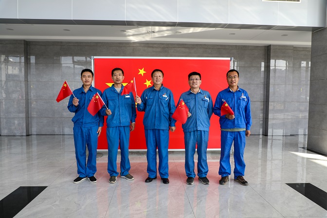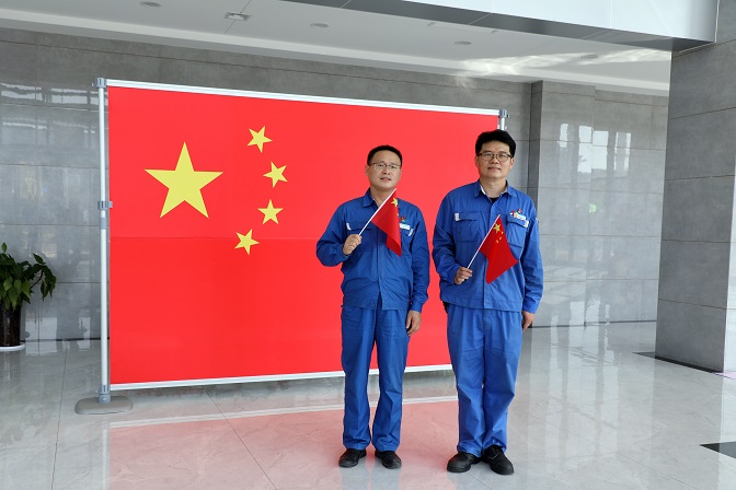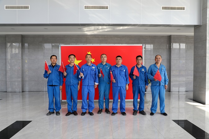 升旗儀式結(jié)束后,職工們激動(dòng)的心情久久不能平靜,紛紛拿出手機(jī)記錄下寶貴瞬間。大家揮舞手中的紅旗,在“熱烈慶祝中國共產(chǎn)黨成立100周年”的大展板前擺個(gè)造型……對祖國的無限熱愛定格在一幅幅難忘的畫面里,銘刻在九月澄澈的廠區(qū),也深深地烙印在每個(gè)人的心間。